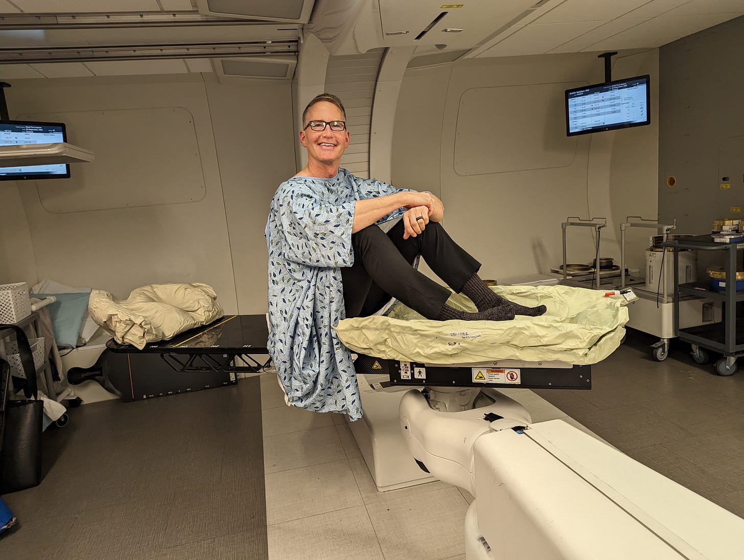 My first day of proton therapy on January 10, 2023, was a simulation where the medical team simulated my treatment without applying the proton beam energy. We did a run-through to ensure the table would move adequately and everything would line up as planned.
