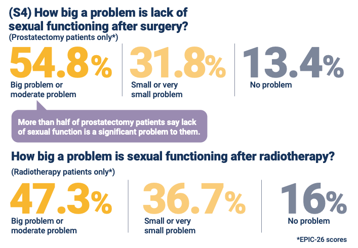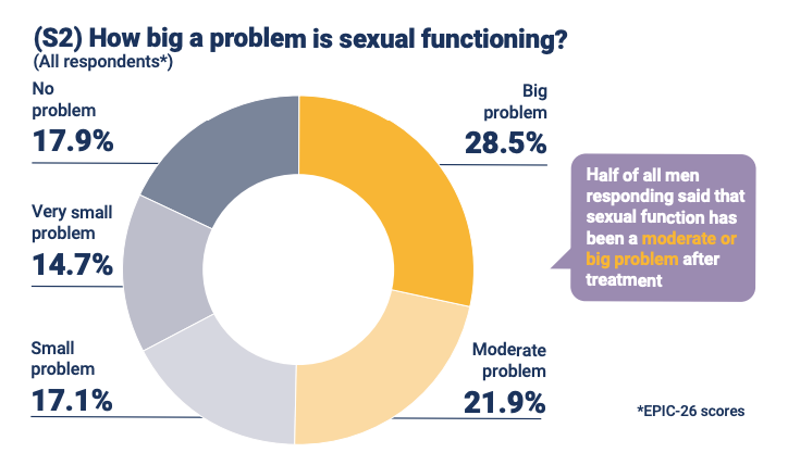 Chart S2 shows just how big of a problem sexual functioning is after treatment for prostate cancer, with 50% of men reporting sexual functioning as a moderate or big problem.