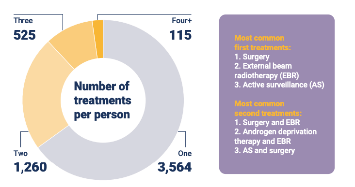 Most men had received only one treatment, with 57% of respondents having undergone radical prostatectomy.