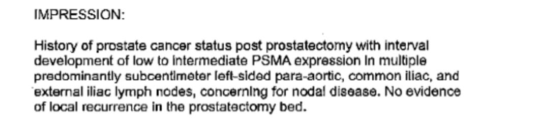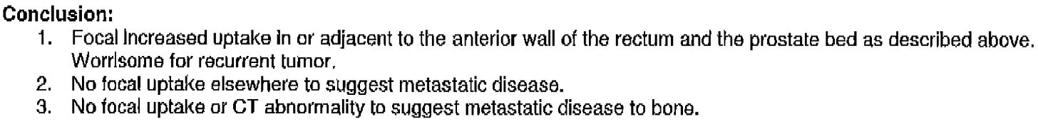 I returned home and on July 1, 2021, I received a fax with the report of the PSMA PET scan. This was its conclusion: