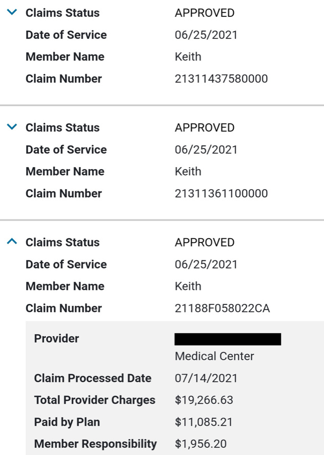 Then a few days later, I received an email from my health insurance company that new information was available in my account. I signed in and found this: